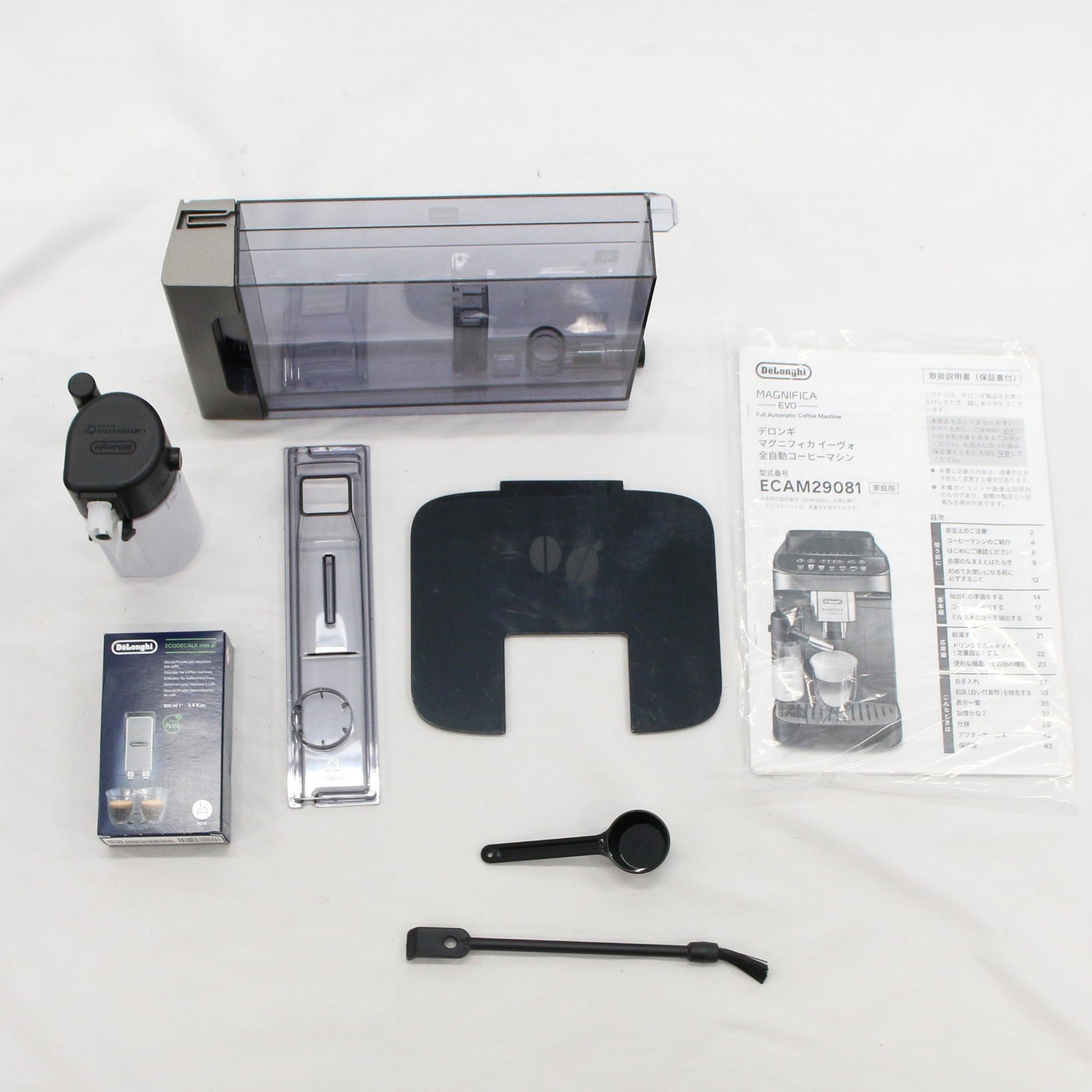 ・ 本体 ・ 計量スプーン ・ クリーニングブラシ ・ ウォーターフィルター ・ コーヒーマシン用除石灰剤 ・ 取扱説明書
