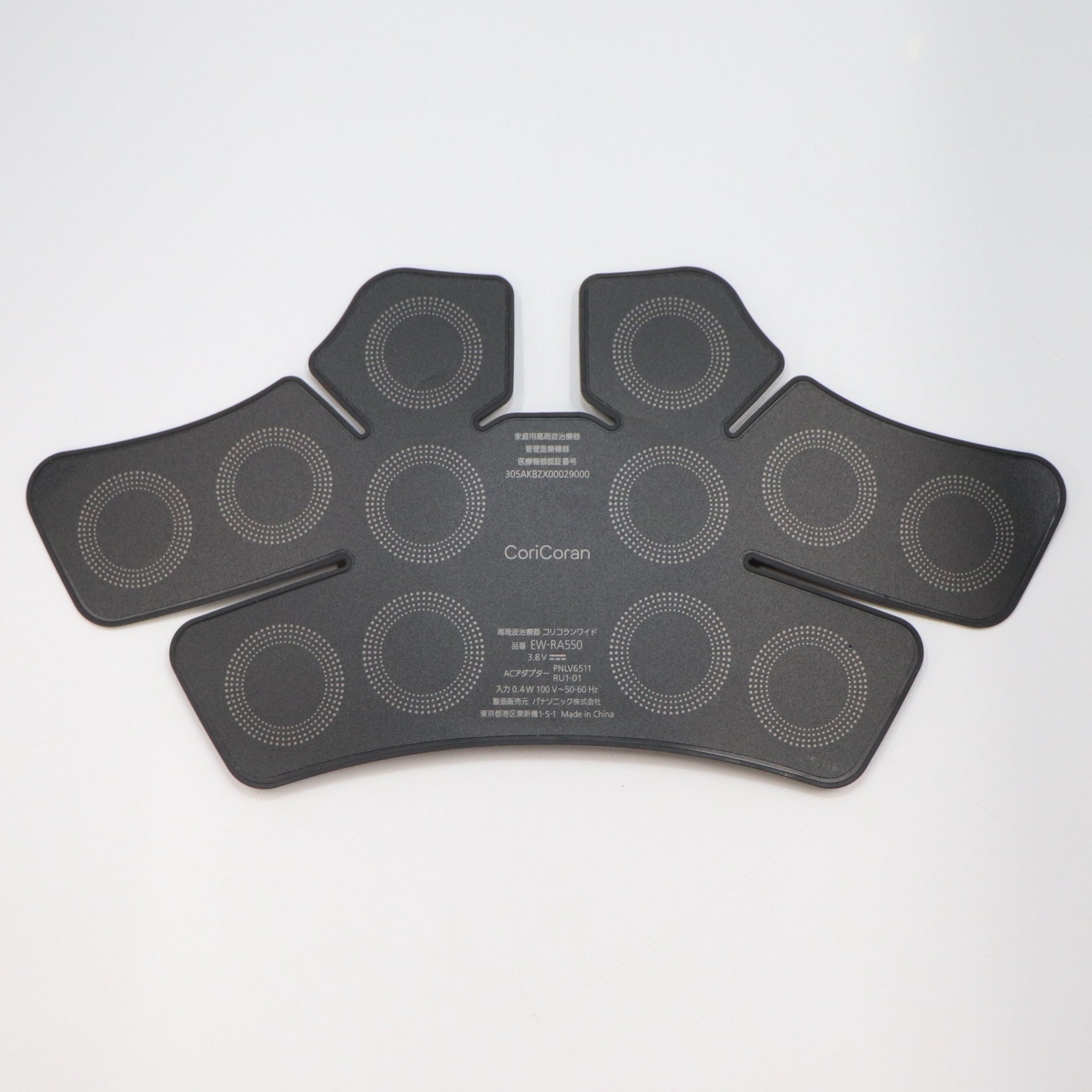 ・アタッチメントを含む全体的に甘い芳香剤の様なにおいあり ※アタッチメントはにおい以外に目立った汚れなどはなく良い状態です。また、アタッチメントは丸洗いが出来ます。 ・アタッチメントに使用による微細なスレ、毛羽立ち、汚れあり ・全体的に使用による微細なスレやキズあり ・取り切れないチリあり ・中古品となりますので、バッテリー容量の劣化に付きましては保証致しかねます。 ①商品名・型番: 高周波治療器 コリコランワイド・EW-RA550 ②製造元:パナソニック株式会社(Panasonic) ③医療機器区分:管理医療機器 ④医療機器番号:305AKBZX00029000