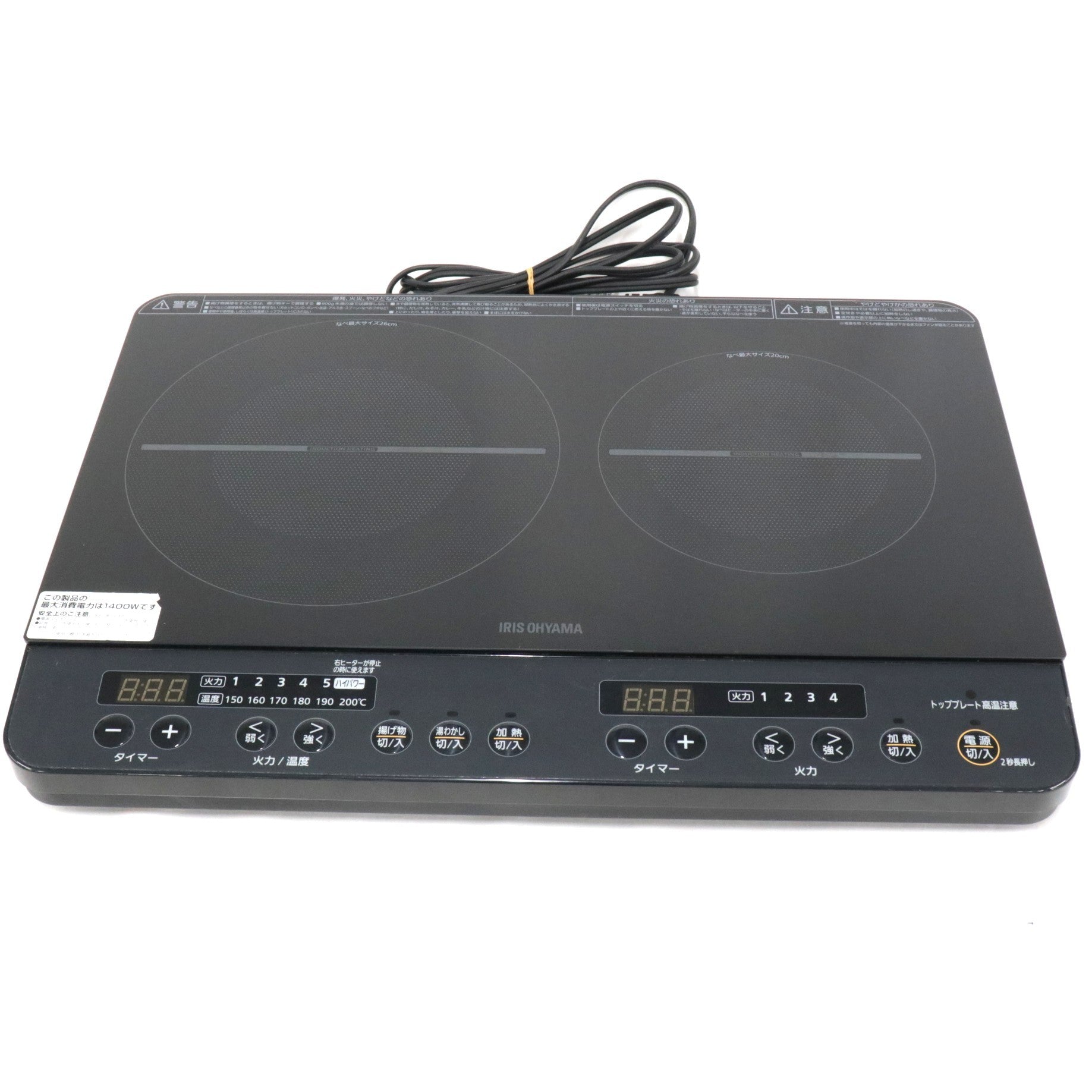 [中古(C)] アイリスオーヤマ 2口 IH クッキングヒーター ブラック IHK-W13S-B 工事不要 1400W 100V 脚付き ihk-w13s-b ブラックihk-w13s-b [可]