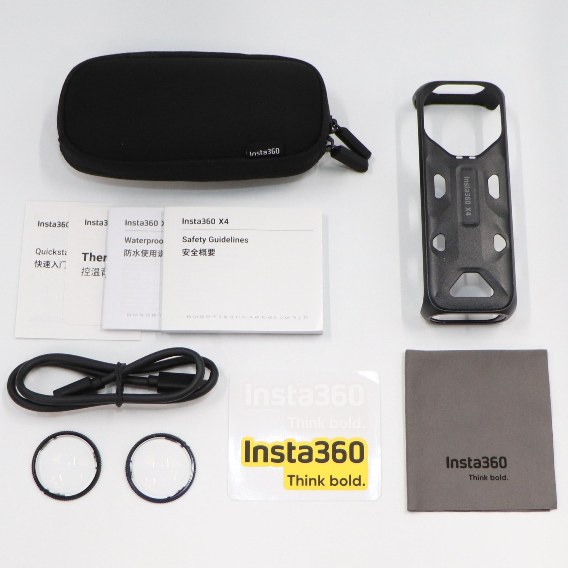 ・X4本体(バッテリー付属) ・標準レンズガード×2 ・保護ポーチ ・Type-C to C 充電ケーブル ・サーモグリップカバー ・クイックガイド(説明書)