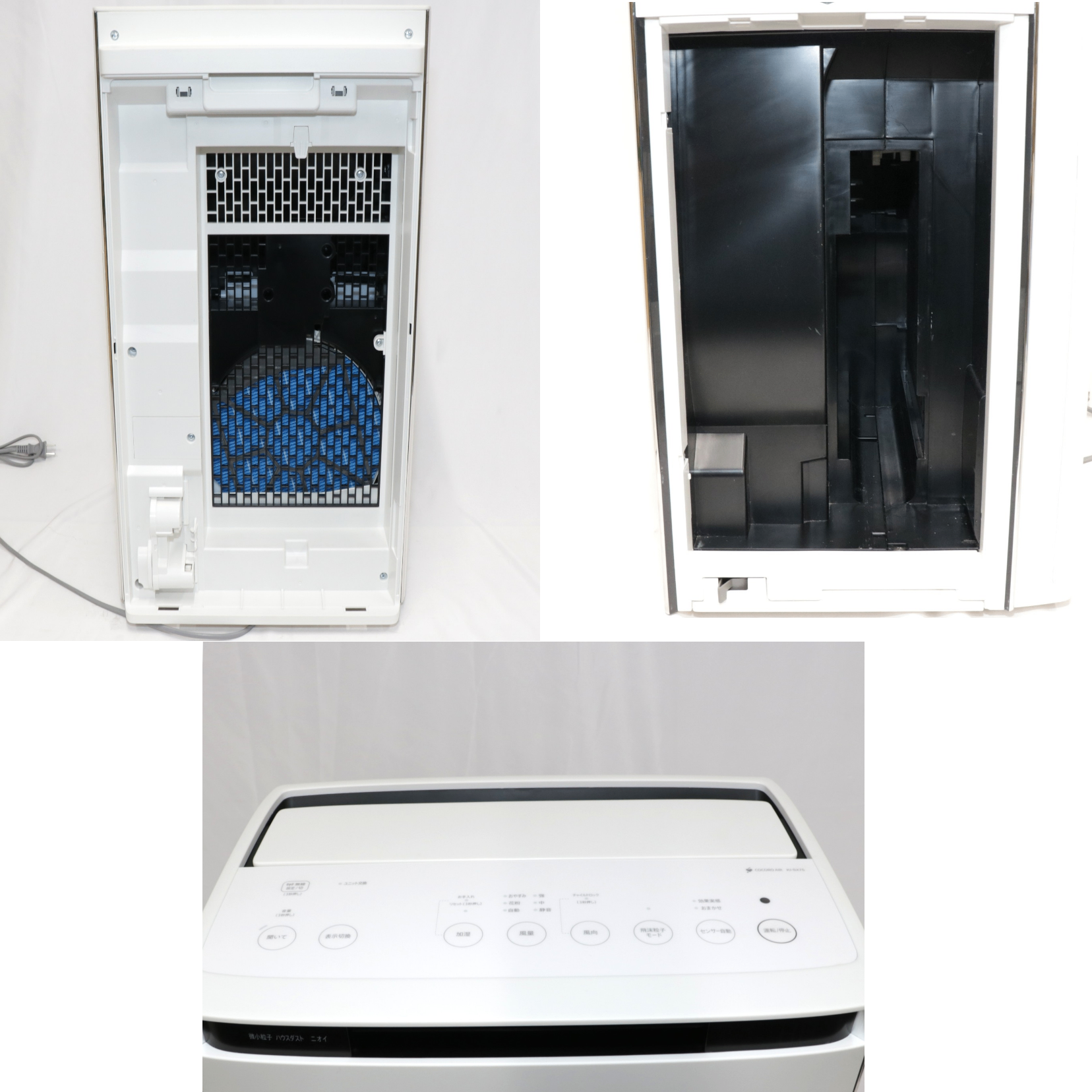 ・全体的に使用による軽微なスレやキズがあります。 ・本体正面に線のような黒い汚れがあり、左側側面に目立つ黒い汚れがございます。 (正面の黒い汚れは薄いため写真では分かりにくいかもしれません。) ・加湿フィルターの部分に黄ばんでいる所とカルキ汚れがございます。 ・加湿機能がある為本体内部、付属品にカルキ汚れがある場合がございます。 ・基本的な清掃は行っておりますが本体内部に清掃が難しい箇所があり、その埃や汚れが残っている場合があります。そのため使用前にはご自身でも清掃いただくことを推奨いたします。