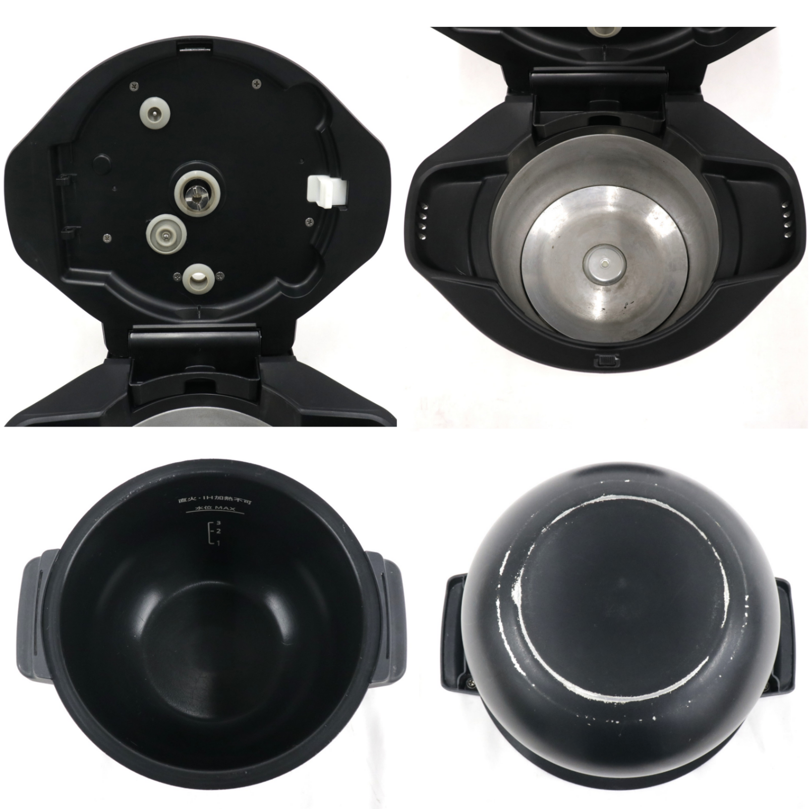 ・全体的に使用による軽微なスレやキズがございます。 ・取り切れないチリやホコリがございます。 ・内鍋の内側や外側に使用による擦り傷がございます。 ・本体内側の底部分に多少の焦げ付きや汚れがございます。 ・内ぶたのパッキン部の変色や食材の臭いがございます。 ・内ぶたを取り付ける部分に変色がございます。 ・蒸気口に一部変色がございます。 ・調理によるにおい残りがございます。