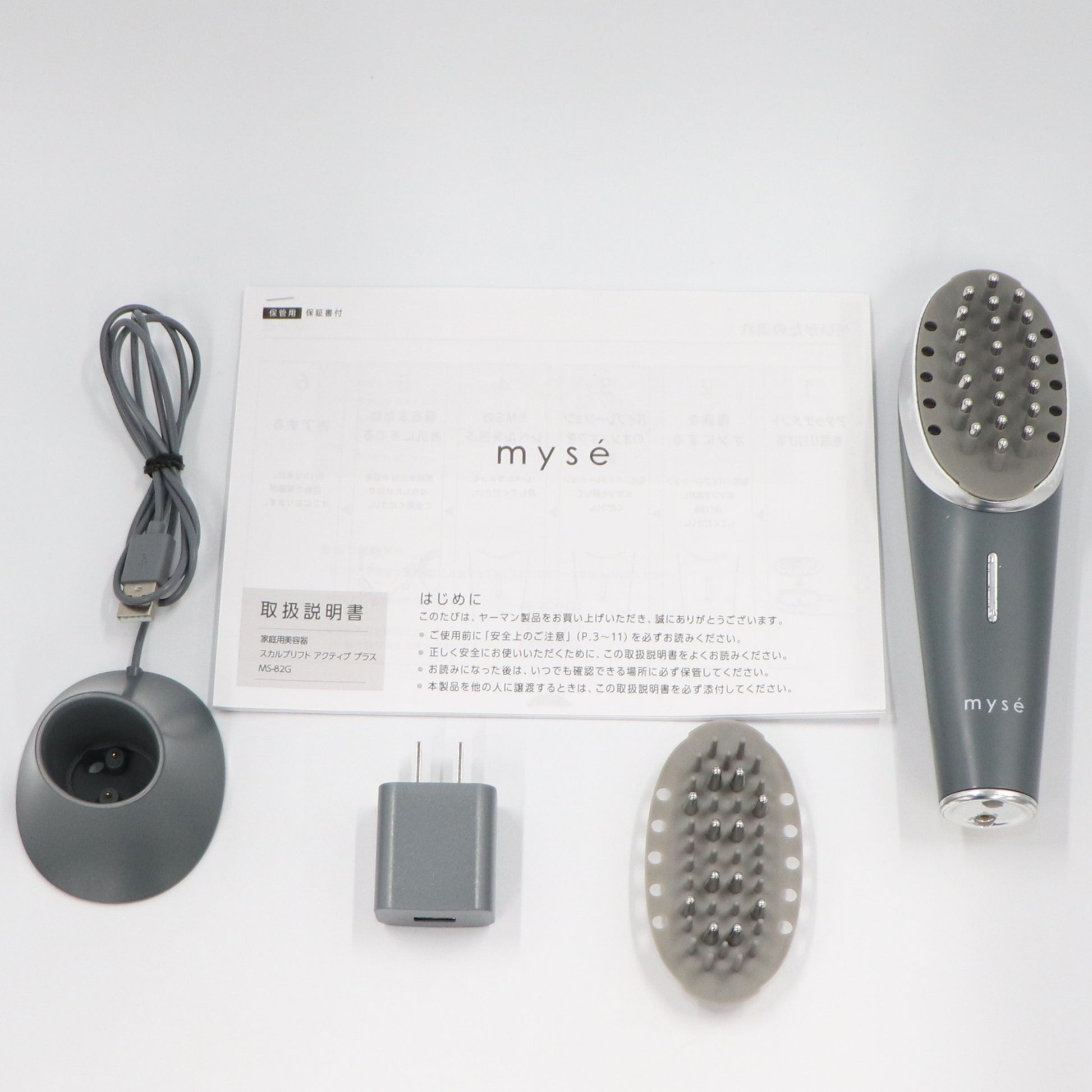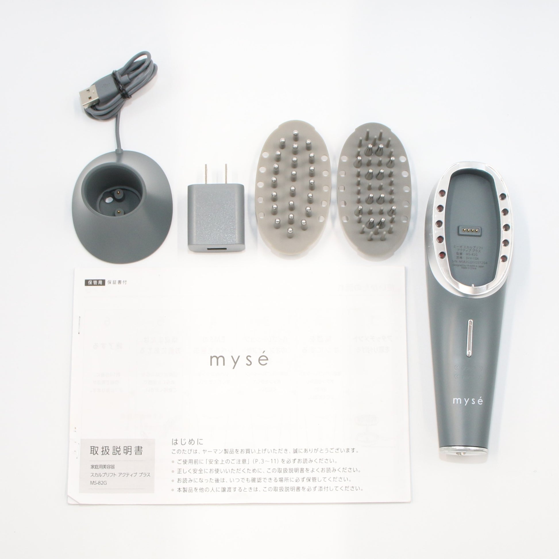 ・本体 ・充電台 ・スカルプ用アタッチメント ・フェイス用アタッチメント ・ACアダプター(type A) ・取扱説明書 ※取扱説明書はコピーになり折れなどの傷みや汚れがあります